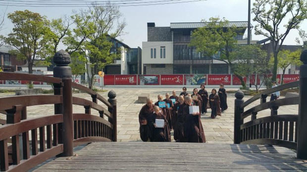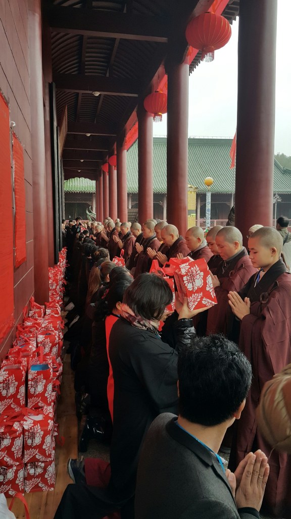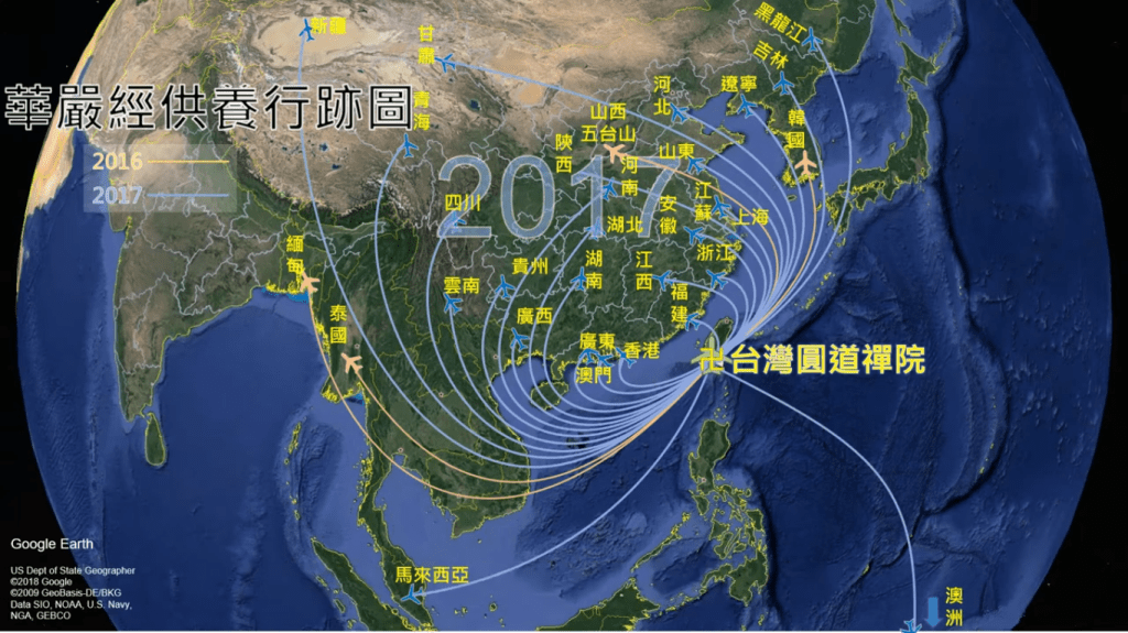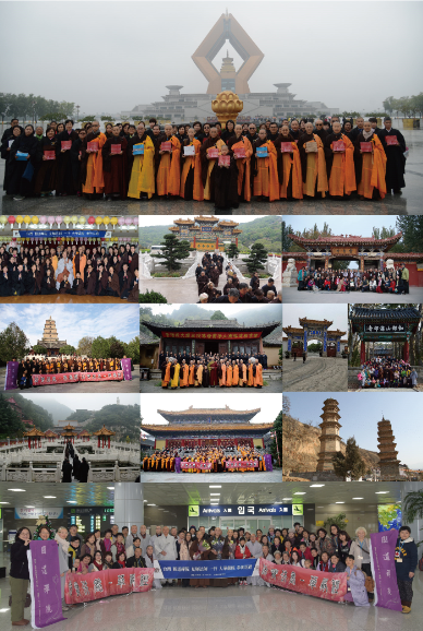 2016 年,懷著好奇與探究的心情,我們組織了幾次的送經菩薩參訪團,到韓國、到中國普陀山、西安、江西、湖北各祖庭道場以及三壇大戒戒場,甚至到五台山普壽寺供養已 103 歲,專講華嚴經的夢參老和尚。這一場跟著《華嚴經》的不可思議之旅,以 「禮敬諸佛、廣修供養」為因心,成就四眾弟子普賢十大願行。