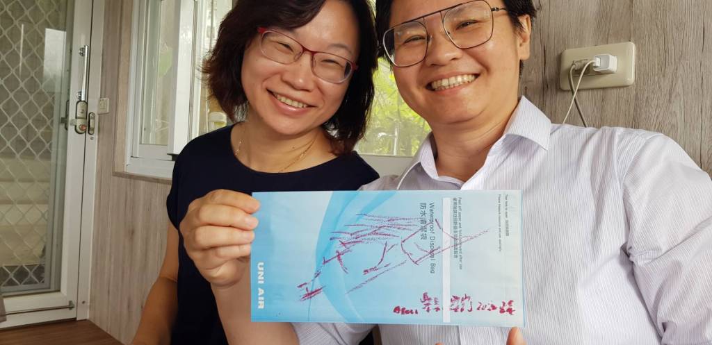 早晨在松山機場剛起飛的天空中,我腦袋閃進設計靈感,但紙筆連同包包鎖在上方的行李櫃,急跟隔壁太太借紙筆,她只有口紅⋯筆有了,紙呢?眼前只剩紙袋⋯顧不得那麼多,只有畫起來才是真⋯,雖然第一次用口紅畫草圖⋯效果還不賴@@!