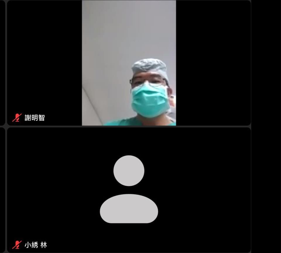 不僅如此,連我們在開刀房的謝醫生手術服都還沒換就馬上上線加入會議!
