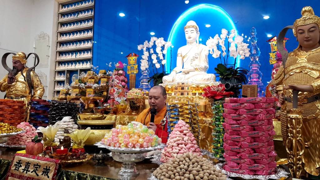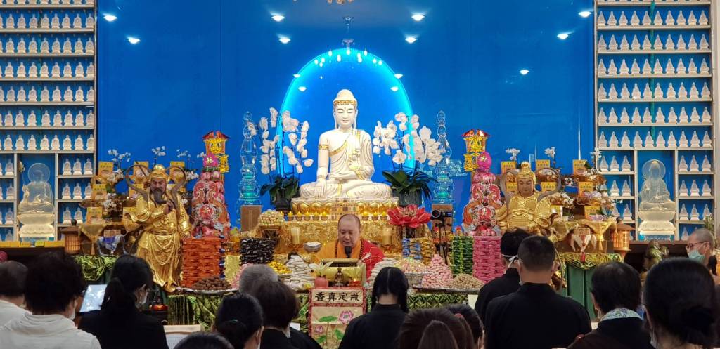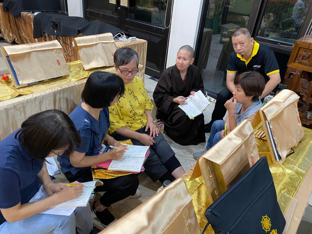 今天圓滿日,將大眾四天的精進做一圓滿總回向。除上述回向功德可超脫七世父母,亦顯現佛法無緣大慈的悲心,下午更有蒙山施食法會,其目的就是超度六道眾生。藉由佛力、法力、大眾用功等加持力於蒙山施食儀式大普渡,超度六道群靈。總回向功德,祈三寶加持,仰仗佛力,願一切亡靈隨佛陀之大法船,同登極樂彼岸。