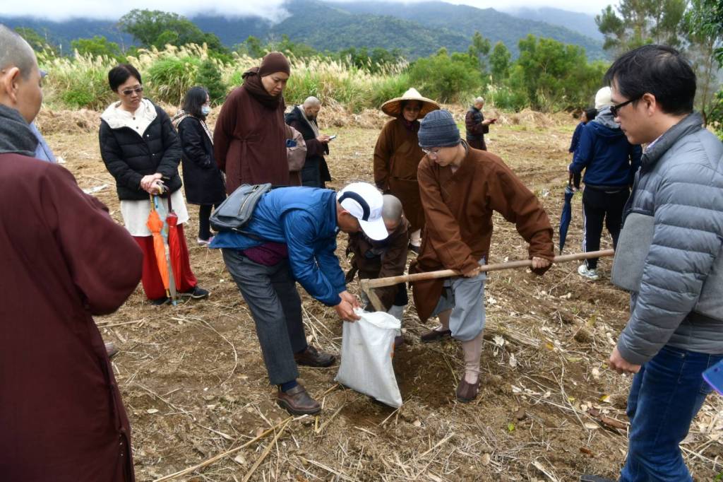 大年初二新春報導 2021-02-142025-04-28 《2021-02-13大年初二新春報導》中草藥博士李興進教授闔府,今日特別前往台東樂山生命教育園區關心香草園規劃願景。以利未來的農植計畫。一路上李教授不吝分享其專業知識與大眾法師居士分享經驗談。 採集泥土回去鑑定也是很重要的環節,需往下挖掘至少十公分深度的採樣做為研究依據。 園區探視完成,隨即展開禪與農植的對話交流,大眾圍坐聚精會神討論聆聽著。 行菩薩道需破塵沙惑,想必隨行師父學員們今日受益匪淺,收穫滿滿。 相關
