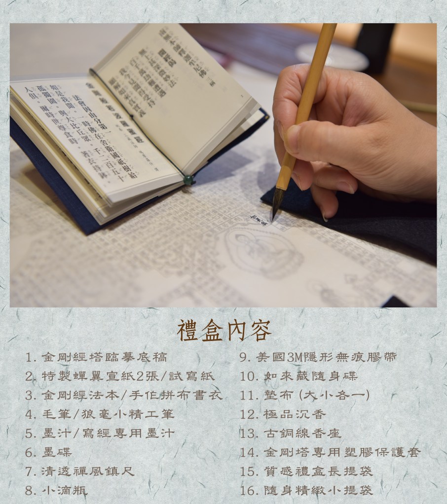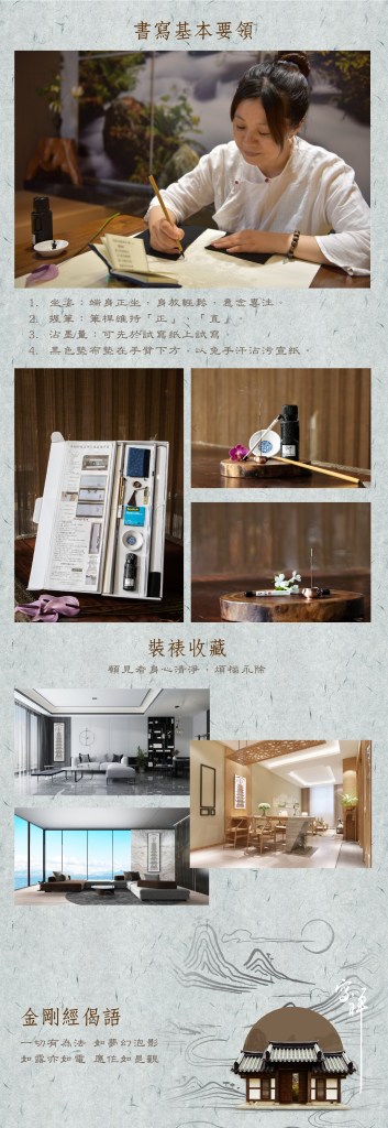 - 寫經宜於靜處,並播放隨身碟內金剛經讀誦音頻為背景樂