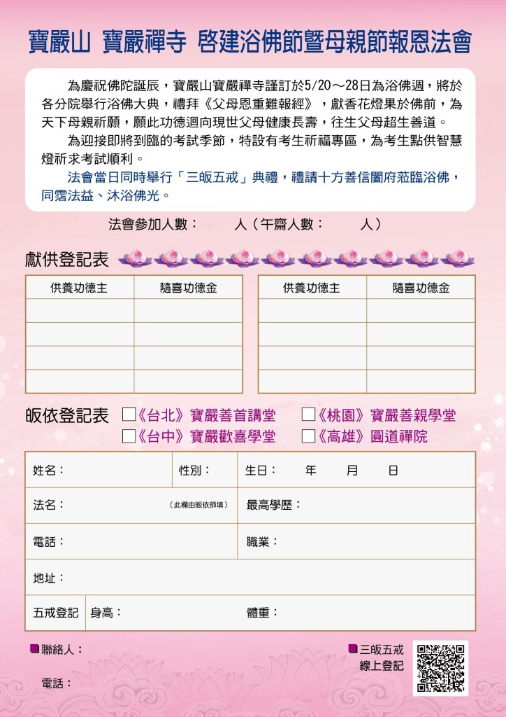 2023/5/20 ~ 5/28 為寶嚴各分院浴佛週,亦舉辦禮拜《父母恩重難報經》