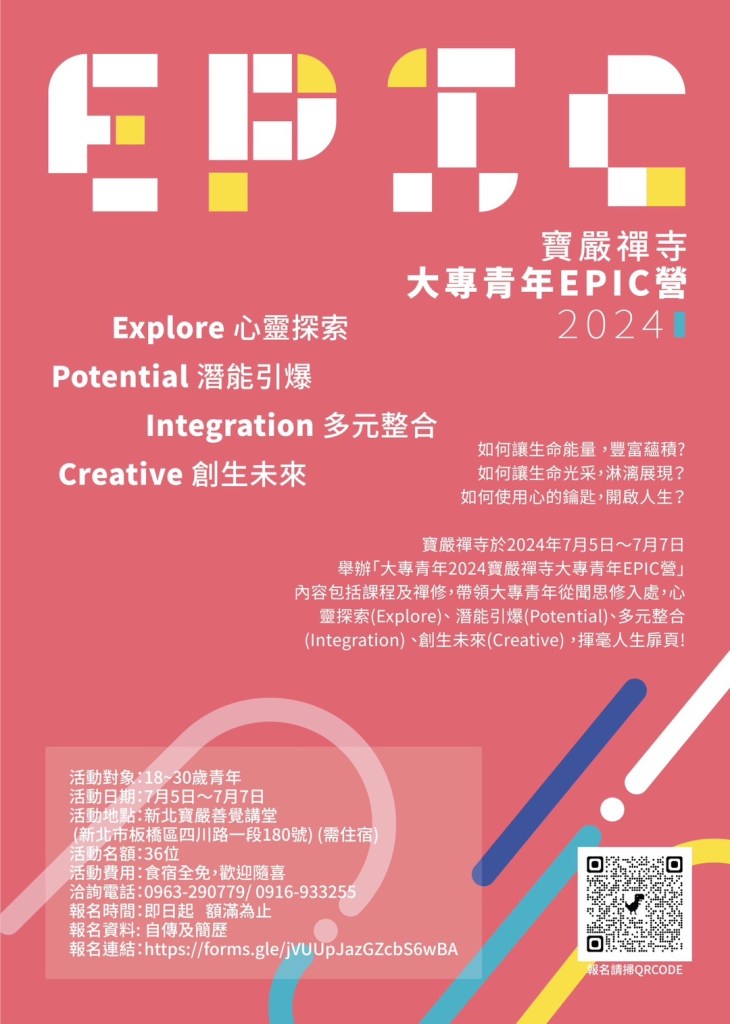 寶嚴禪寺於2024年7月5日~7月7日 舉辦「大專青年2024寶嚴禪寺大專青年EPIC營」
