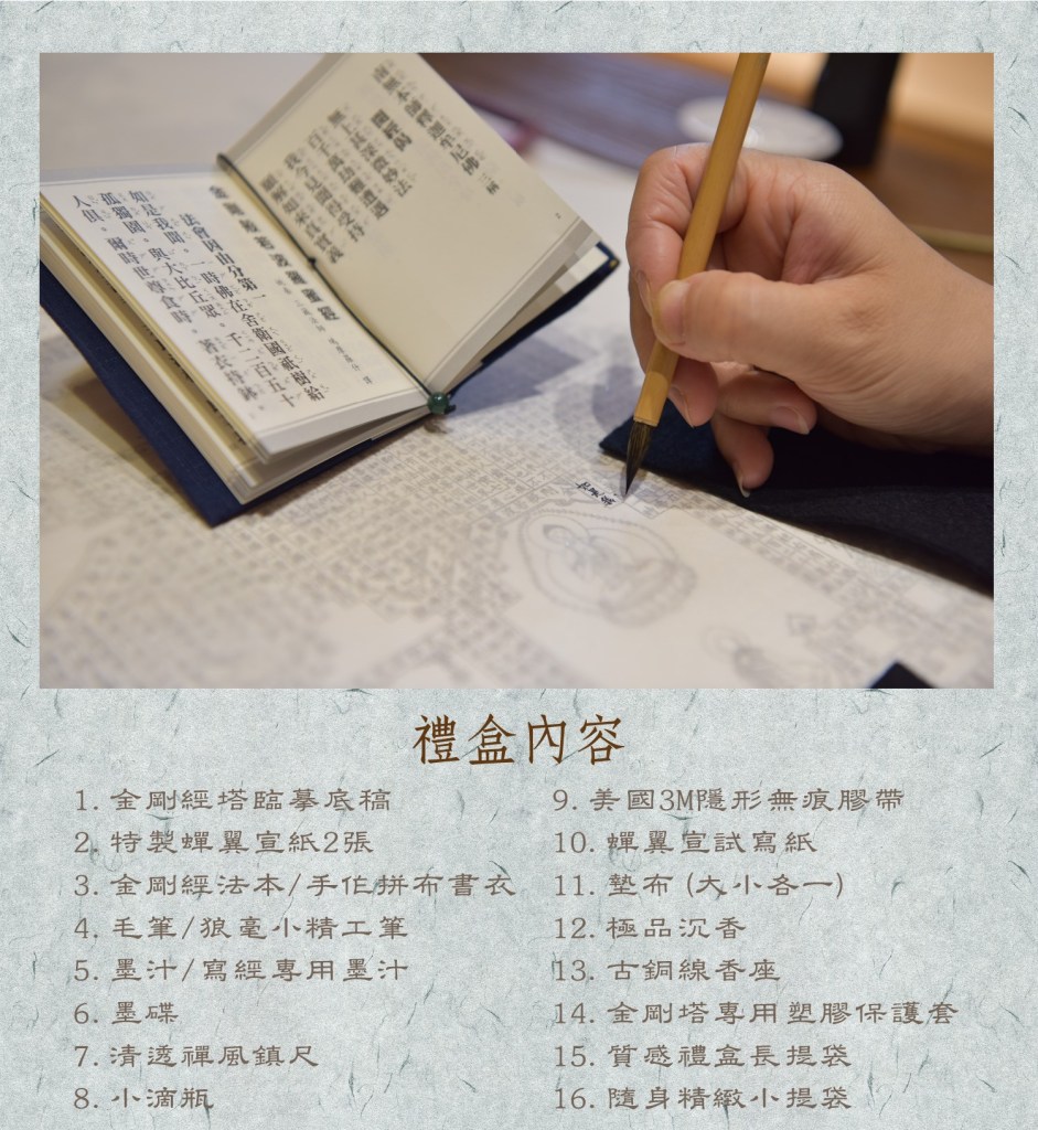- 寫經宜於靜處,並播放隨身碟內金剛經讀誦音頻為背景樂